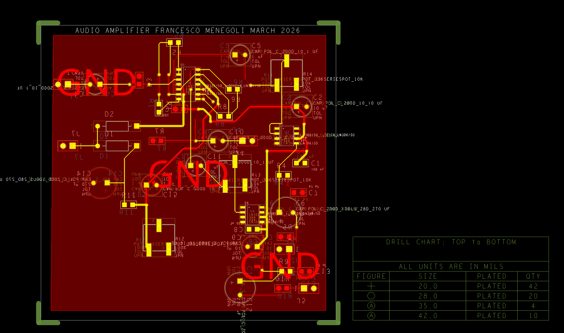 This project focused on designing two PCBs — a handset and an audio amplifier — from schematic capture through layout and Gerber file generation, following a professional design workflow.